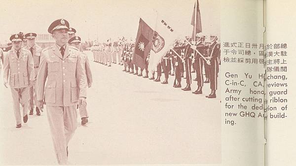 61年5月30日陸軍總司令于豪章主持大漢營區剪綵啟用儀式,陸軍總司令部正式遷入新址。距離開工還不到兩年,此時工程尚未全部完工,也沒有完成驗收,許多施工瑕疵改善與承包商爭議直到一年半後才結案。(圖片來源: 中國陸軍月刊130期,民61年6月)