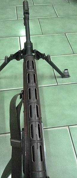 早期的五七甲式為增加連續射擊時散熱效能,上護木左右各開有6個長格形的散熱孔,但後期已不見此種形式上護木,可能是為避免土石沙塵滲入造成故障。(Photo by cclee)