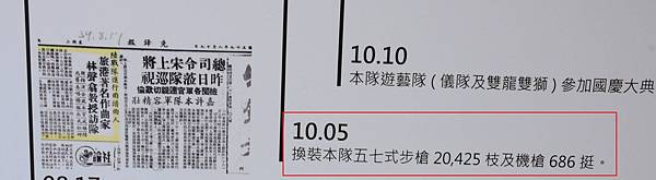 陸戰隊隊史館的歷年大事記中,民國59年10月5日換裝五七式步機槍,但這應是開始換裝日期,而非完成日期。