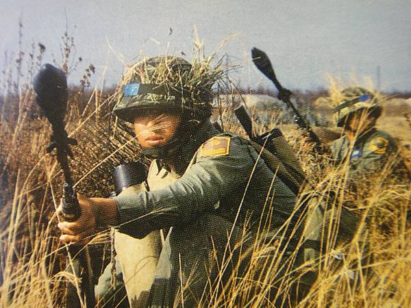 五七式步槍加裝槍榴彈發射器後,可使用專用子彈發射槍榴彈。(圖片來源:中國陸軍畫刊,民80年12月。)