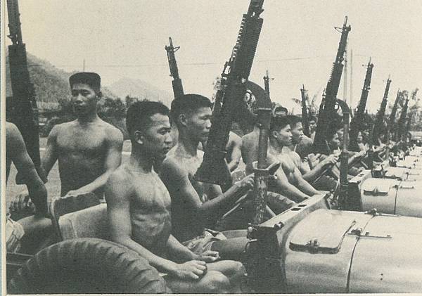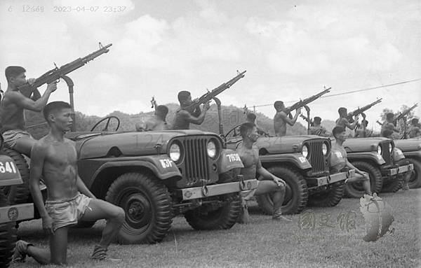 民國61年的陸戰一師兩棲偵搜連的M38吉普車前後各裝一挺五七式機槍。(圖片來源:國史館、中國海軍畫刊,民61年9月。)