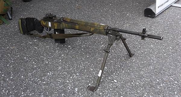 十年前少數狀況較佳的五七式/M14步槍曾改裝成狙擊槍,不知目前是否繼續在部隊中服役。圖為民國104年花防部營區開放時展示的五七式步槍,該槍由射手親自至庫房挑選狀況最好的庫存五七式步槍,再加上兩腳架、噴塗迷彩與槍托貼腮等個人化改造,以達到最佳射擊效果(狙擊鏡因對外開放參觀時容易損壞遺失而未裝上)。